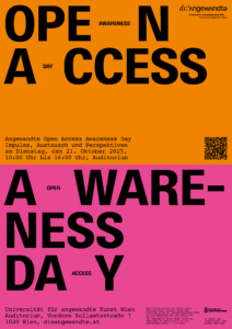 Der Angewandte Open Access Awareness Day soll helfen, das Bewusstsein für die Nutzung von Open Access zu schärfen sowie damit in Verbindung stehende Bedürfnisse, Sorgen, Wünsche und Ideen in gebündelter Form zu verhandeln. Ziel ist es, auf Basis des Austausches Strategien und Maßnahmen für die Zukunft von Open Access an der Angewandten zu entwickeln.